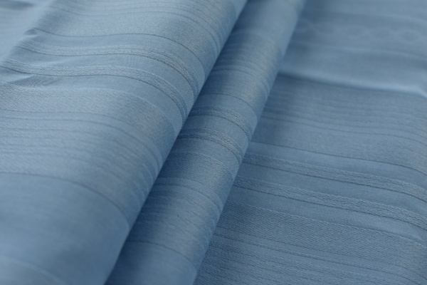 Cotton jacquard weaved fabric with a lower weight, called voile. Light blue colour with a pattern seen in the photo.