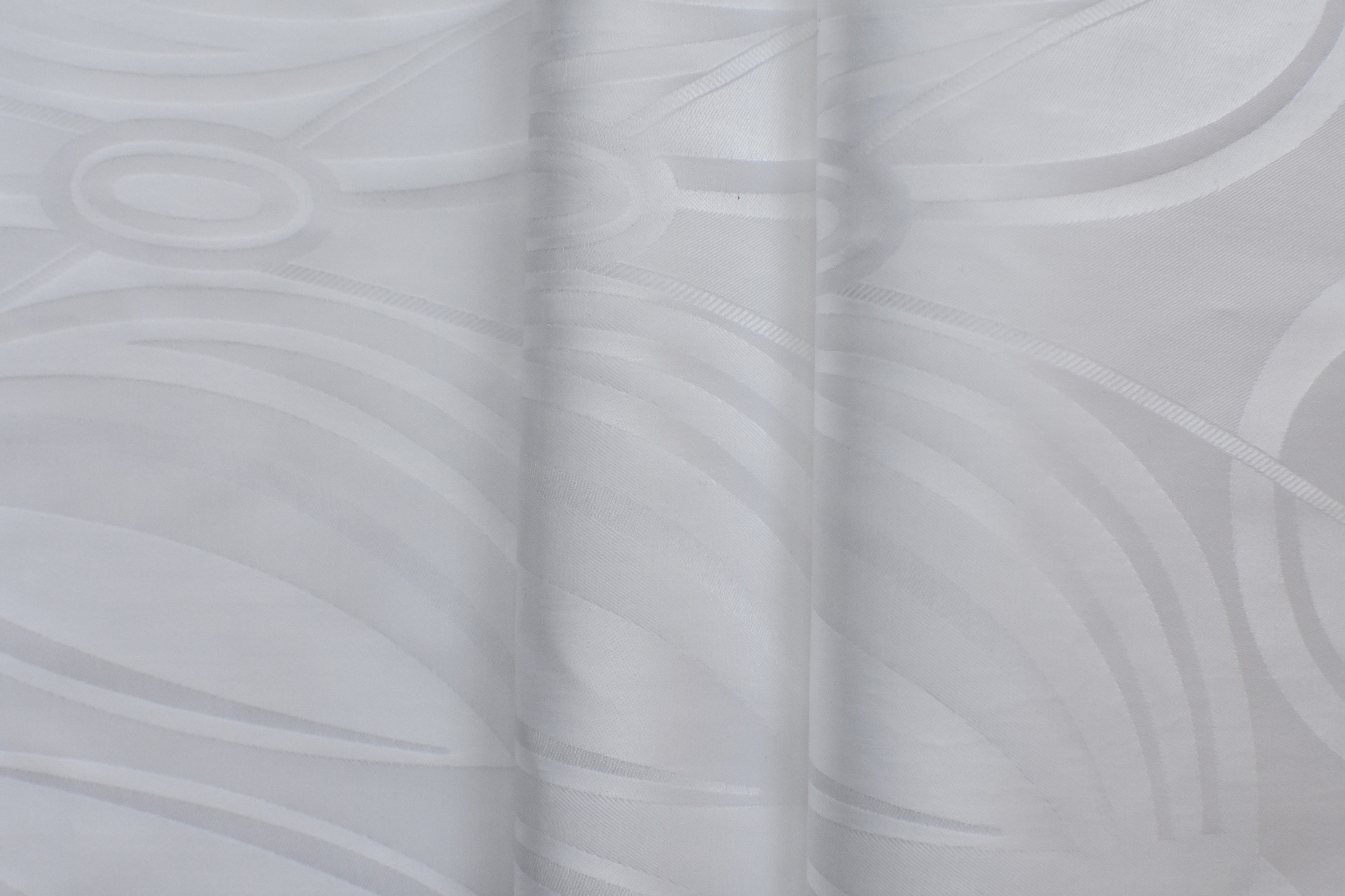 Bavlnená látka žakárového tkania s vyššou gramážou – tzv. africký brokát. Látka je bielej farby so vzorom, ktorý môžete vidieť na fotke.