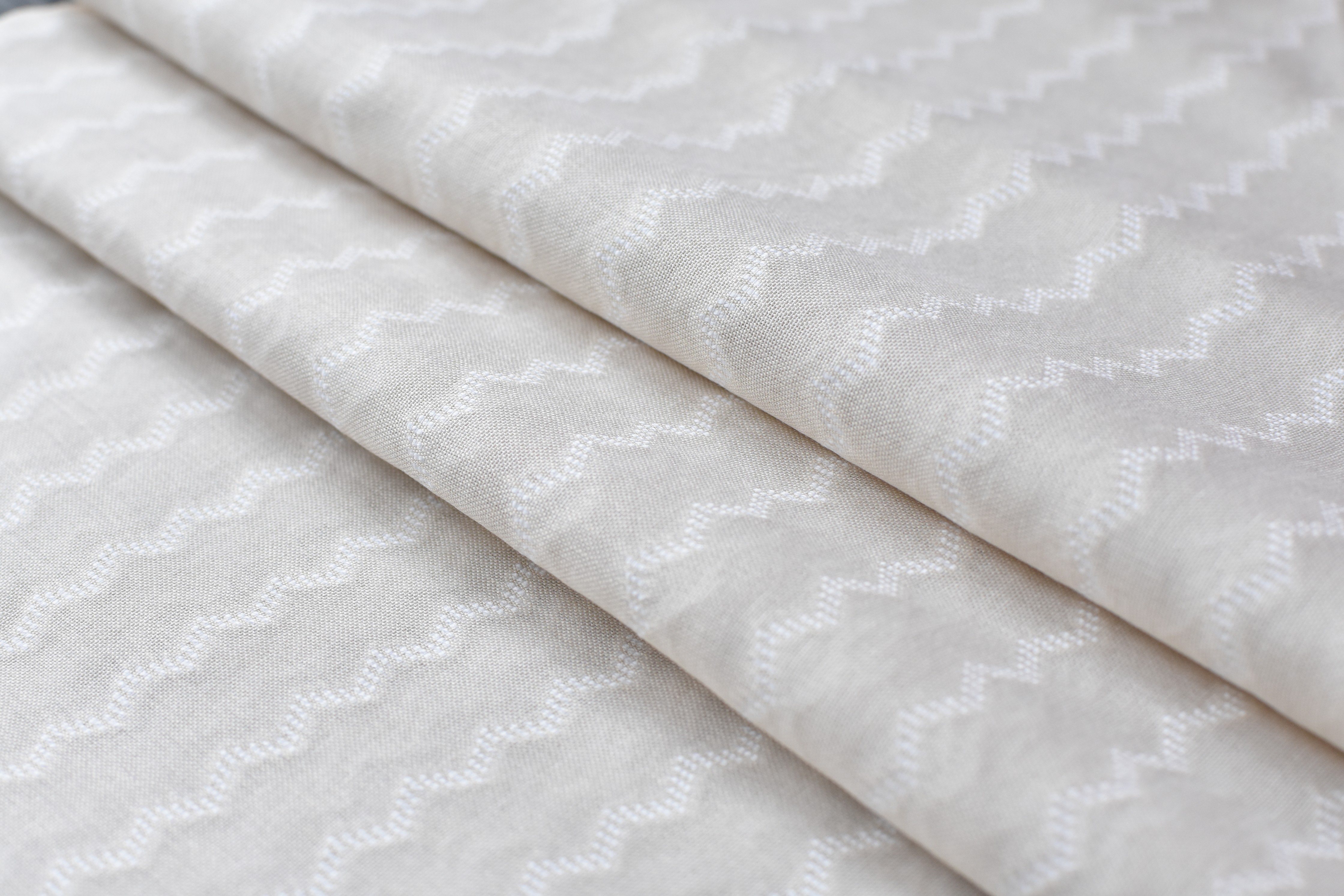 Tissu en coton de poids inférieur, de couleur beige clair avec un motif visible sur la photo.