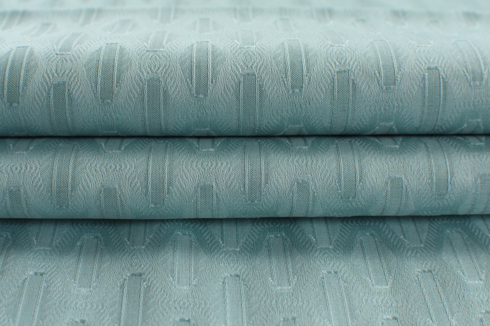 Cotton jacquard weaved fabric with a lower weight called voile. Light green colour with a pattern seen in the photo.